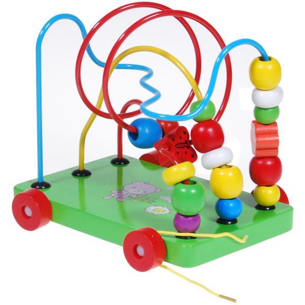 Το παιδί μετακινεί τις πολύχρωμες χάντρες στις διαδρομές,