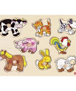 Goki παζλ – σφηνώματα ξύλινο “Ζώα της φάρμας” 30×21εκ. 8 τεμαχίων