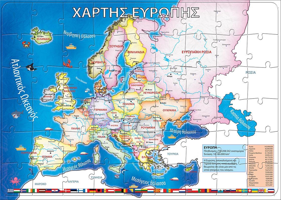 Παζλ με τον χάρτη της Ευρώπης 54 τεμαχίων 45Χ65εκ.