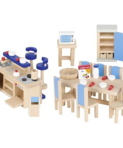 Goki σετ κουζίνας ξύλινο μπλε 30 τεμαχίων για κουκλόσπιτο.