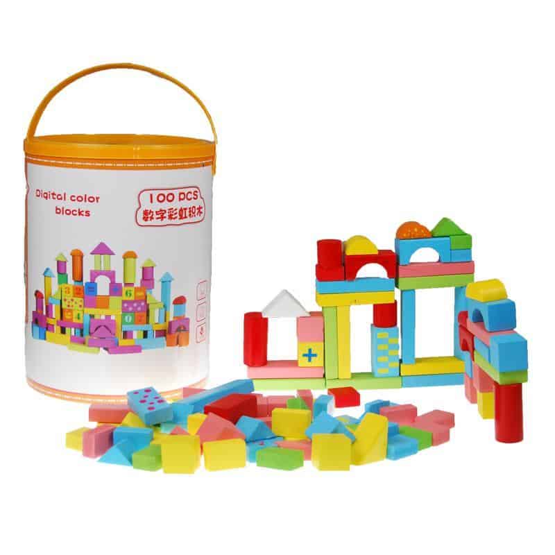 Τουβλάκια ξύλινα χρωματιστά 100τεμ. σε στρόγγυλο κουτί δώρου