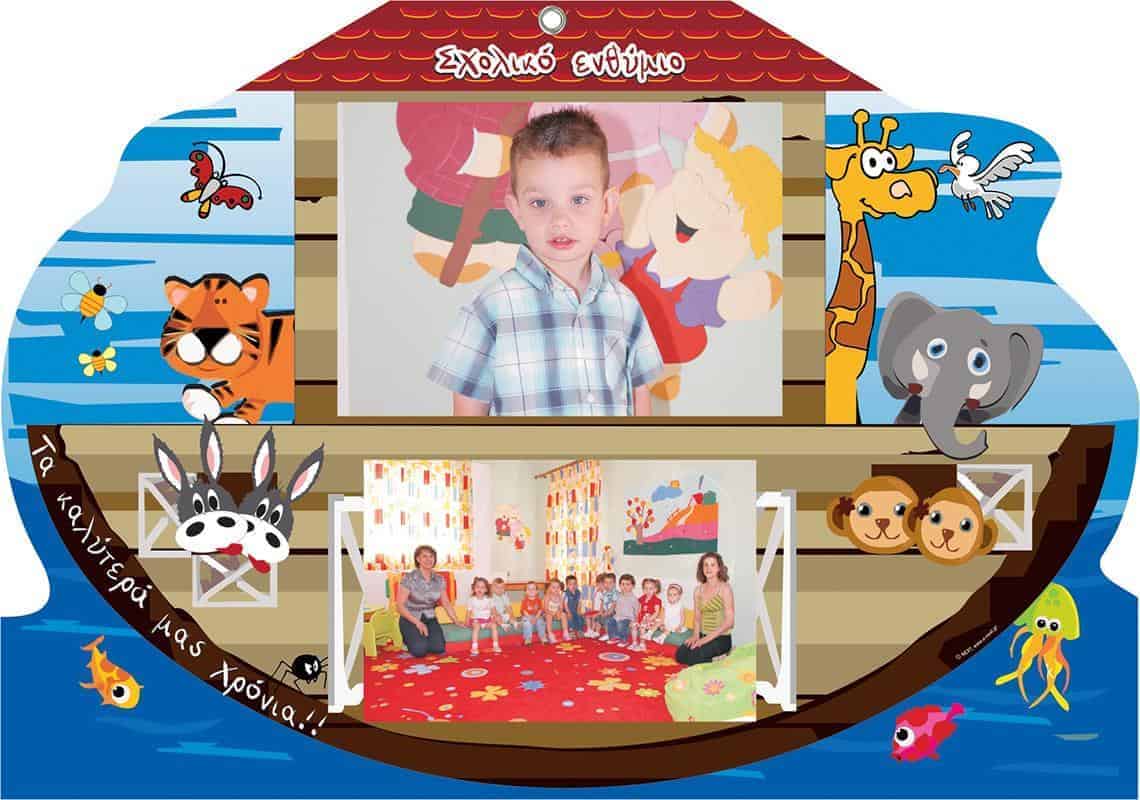 Σχολικό ενθύμιο “Κιβωτός” με κοπτικό. Από σκληρό χαρτόνι 2.5 χιλιοστών. Τυπωμένο 4χρωμία 2 όψεις. Με μεταλλικό τρουκ για να κρέμεται στον τοίχο σαν κάδρο. Κλασσικό αναλογικό ενθύμιο. Κολλάτε την φωτογραφία του μαθητή και της τάξης (εώς 13χ18εκ.). Διαστάσεις: 43×30εκ.