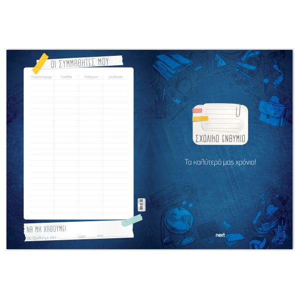 Next σχολικό ενθύμιο δίφυλλο “Μπλε” 24×34εκ.