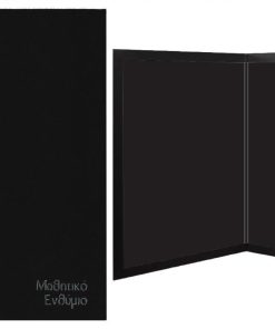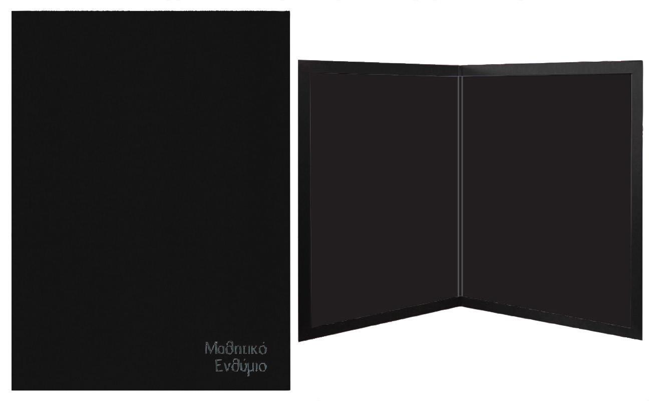 Σχολικό ενθύμιο δίπτυχο μαύρο με δερματίνη από σκληρό χαρτόνι 2χιλ. Μαύρο χαρτί εσωτερικά για να κολλάτε τις φωτογραφίες σας. Δυνατότητα ασημοτυπίας στο εξώφυλλο με το όνομα του σχολείου και το σχολικό έτος. Διαστάσεις: 23,5×32εκ.
