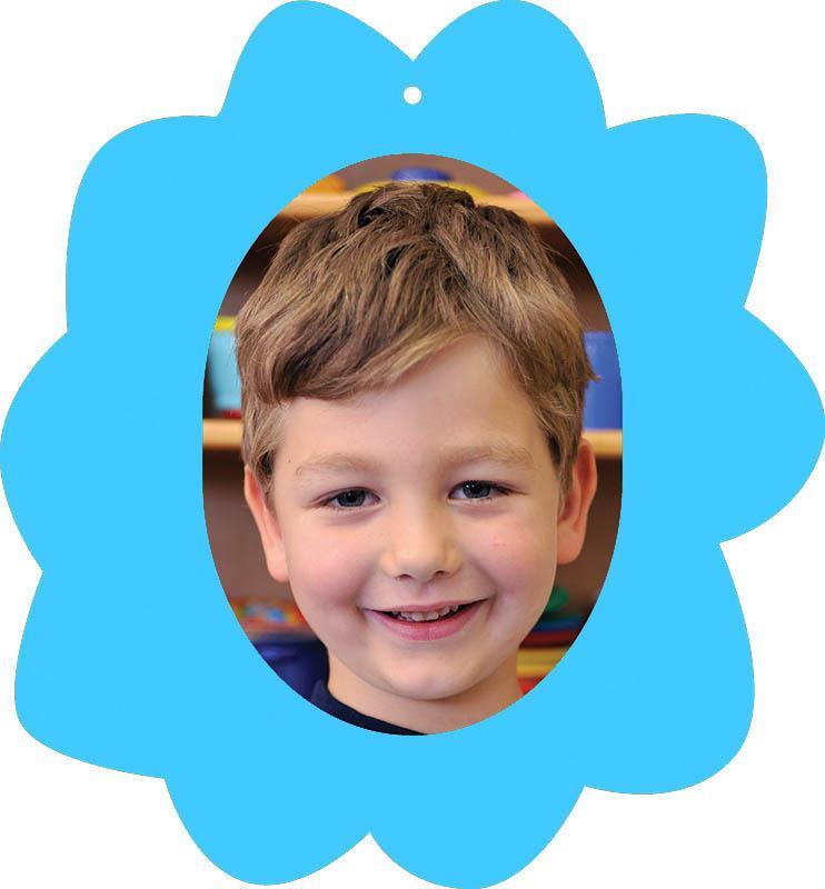 Σχολικό ενθύμιο με κοπτικό “Λουλούδι” μπλε. Εξωτερικά χρωματιστό χαρτόνι 220γρ. κολλημένο πάνω σε χοντρό χαρτόνι. Διαστάσεις: 23×25εκ. Για φωτογραφία 13×18εκ.