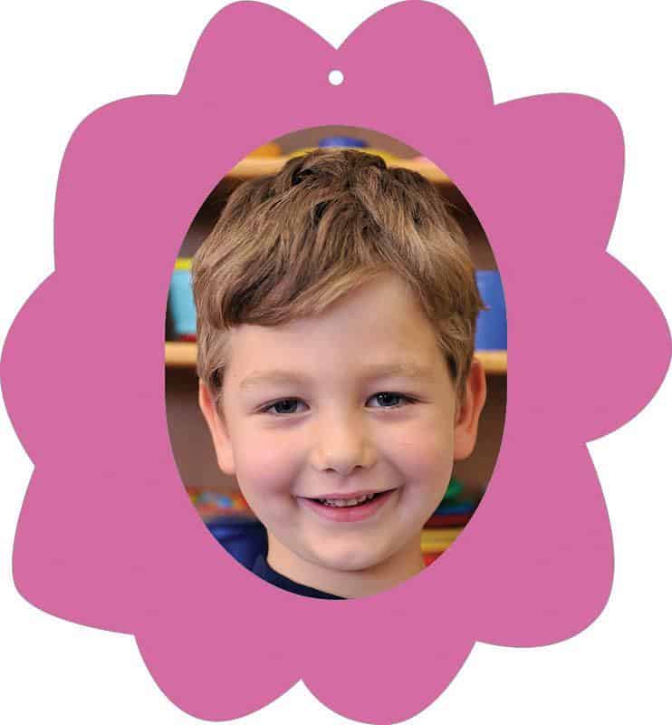 Σχολικό ενθύμιο με κοπτικό “Λουλούδι” φουξ. Εξωτερικά χρωματιστό χαρτόνι 220γρ. κολλημένο πάνω σε χοντρό χαρτόνι. Διαστάσεις: 23×25εκ. Για φωτογραφία 13×18εκ.
