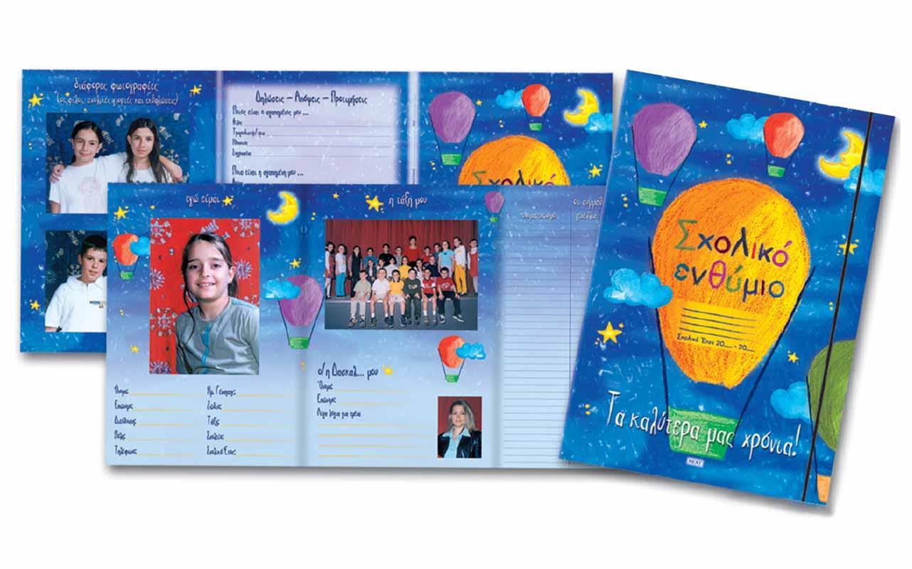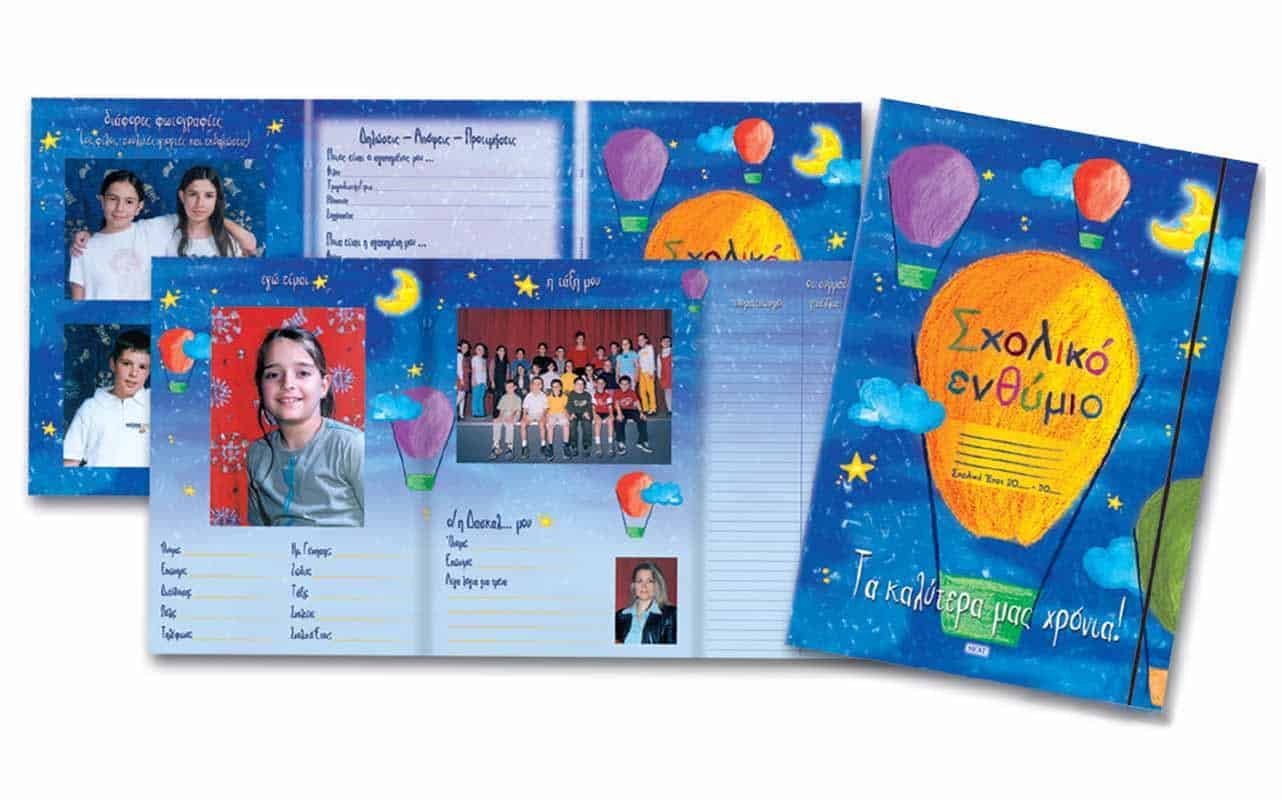 Σχολικό ενθύμιο τρίπτυχο με λάστιχο “Αερόστατο”.