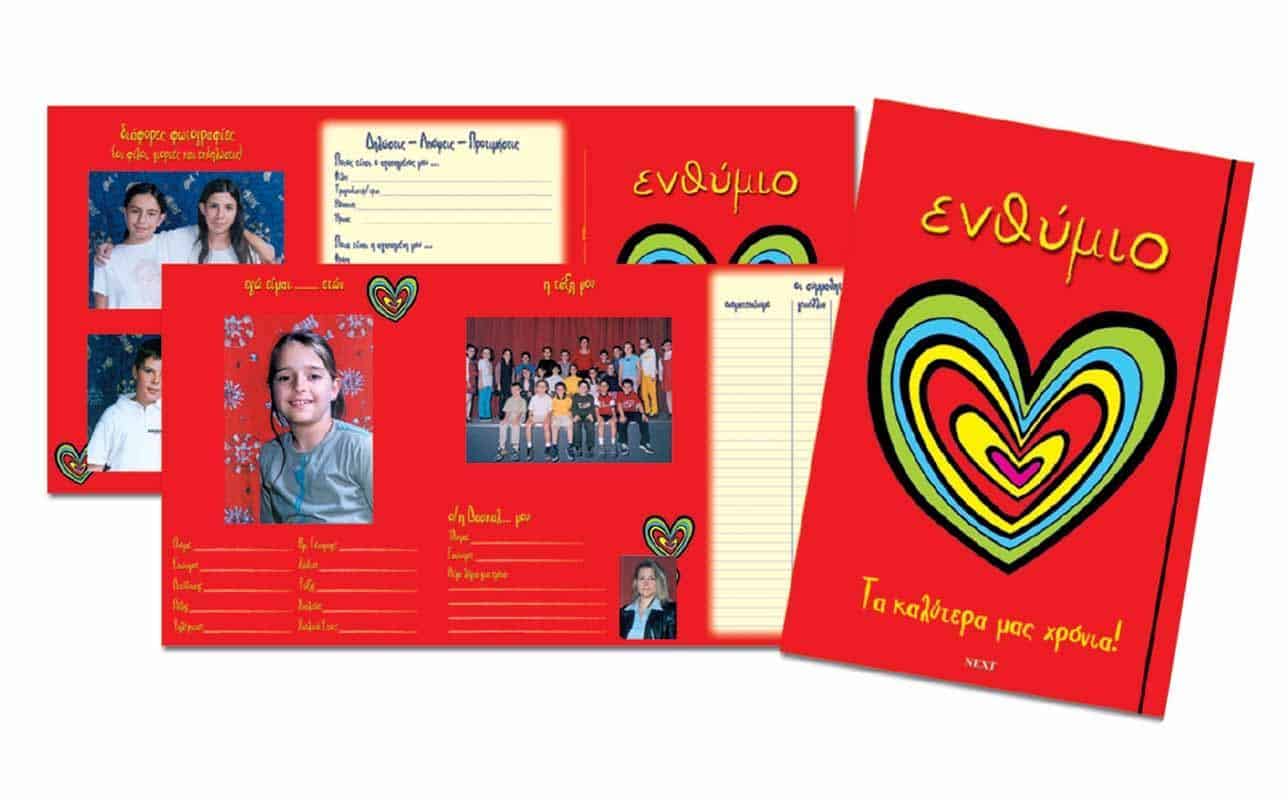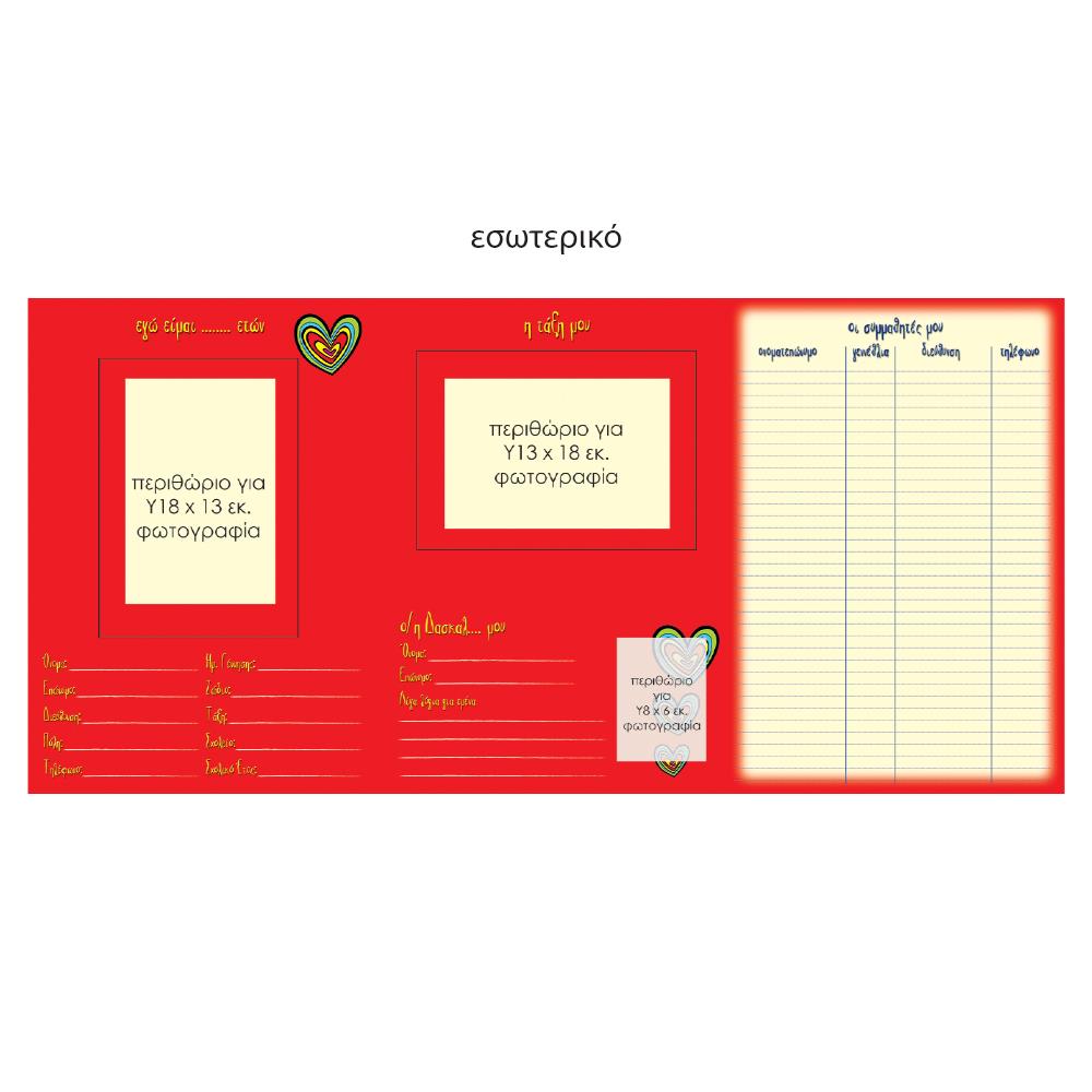 Σχολικό ενθύμιο τρίπτυχο με λάστιχο “Καρδιά”.