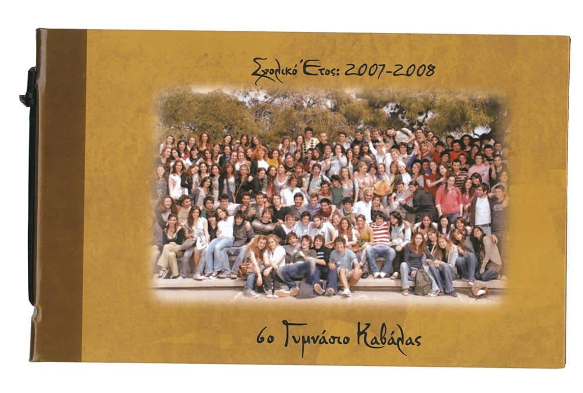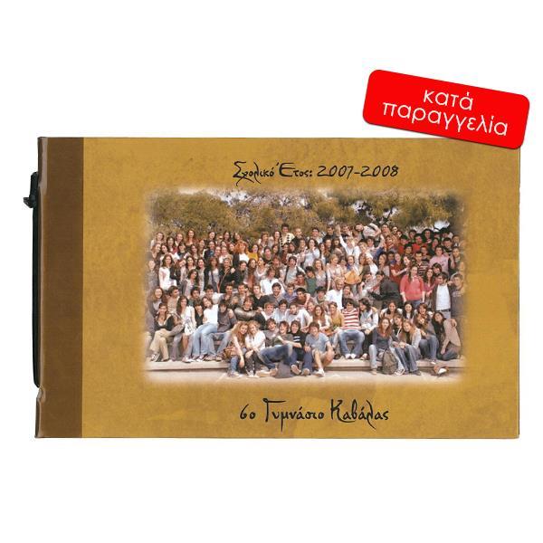 Σχολικό λεύκωμα Νο3 ψηφιακό κάθετο. Το πολυτελές αυτό λεύκωμα είναι κατάλληλο και για Γυμνάσιο και για Λύκειο. Το εξώφυλλο είναι σκληρό καπάκι 2χιλ. με καλλυματική με δικό σας θέμα. Τα εσωτερικά φύλλα 250γρ. δένονται είτε με σπιράλ είτε με κορδόνι. Κάθε εσωτερική σελίδα έχει τη φωτογραφία ενός μαθητή και ειδική φόρμα για να ανταλλάσουν οι μαθητές στοιχεία επικοινωνίας. Τα λευκώματα μοιράζονται στην τάξη και ο κάθε μαθητής μπορεί να συμπληρώνει τα στοιχεία του. Διαστάσεις: 14×20εκ. κλειστό. 28×20εκ. ανοιχτό.