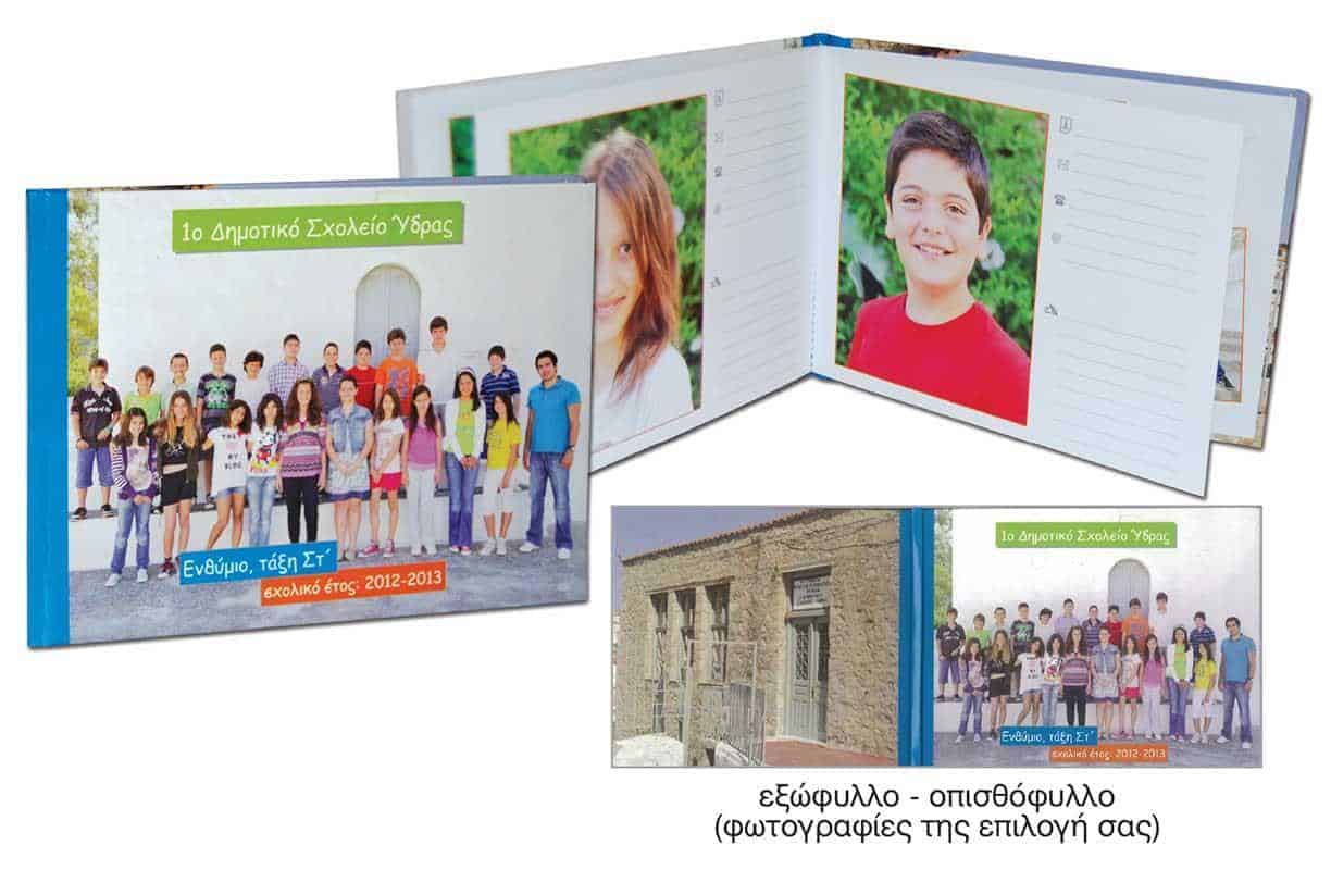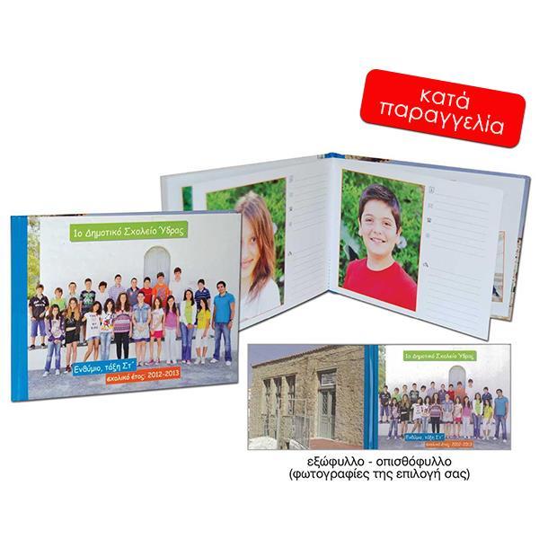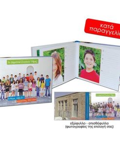 Σχολικό λεύκωμα ψηφιακό πολυσέλιδο καλλιτεχνική βιβλιοδεσία. Με 11 σαλόνια ( 20μαθητές + δάσκαλος + ομαδικές τάξης). Μια φωτογραφία μαθητή ανά σελίδα 17χ23εκ. Χώρος για ανταλλαγή στοιχείων επικοινωνίας και αφιερώσεις. Εσείς μας στέλνετε μόνο τις φωτογραφίες. Διαστάσεις: 17×23εκ. κλειστό και 17×46εκ. ανοιχτό.