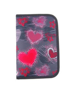 Κασετίνα σχολική γεμάτη με 1 φερμουάρ “Καρδιές”.