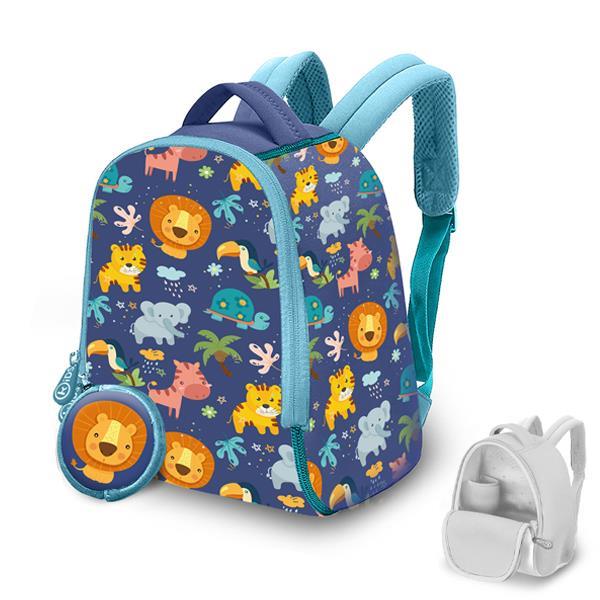 Κατασκευασμένο από υψηλής ποιότητας αδιάβροχο υλικό Neoprene, είναι ιδιαίτερα ανθεκτικό και εύκολο στο καθάρισμα. Οι ρυθμιζόμενοι και ενισχυμένοι ιμάντες ώμου προσφέρουν άνετη και ασφαλή εφαρμογή, ενώ το ζωηρό και πολύχρωμο σχέδιο με δεινοσαυράκια στη ζούγκλα κάνει κάθε μικρό εξερευνητή να ξεχωρίζει.