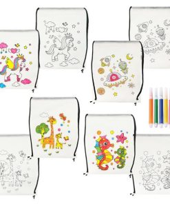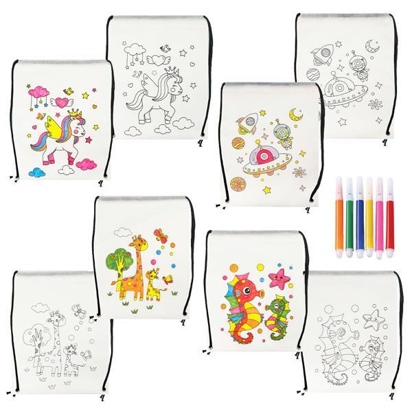 Τσάντα πλάτης non wooven λευκή για ζωγραφική με 6 μαρκαδόρους.