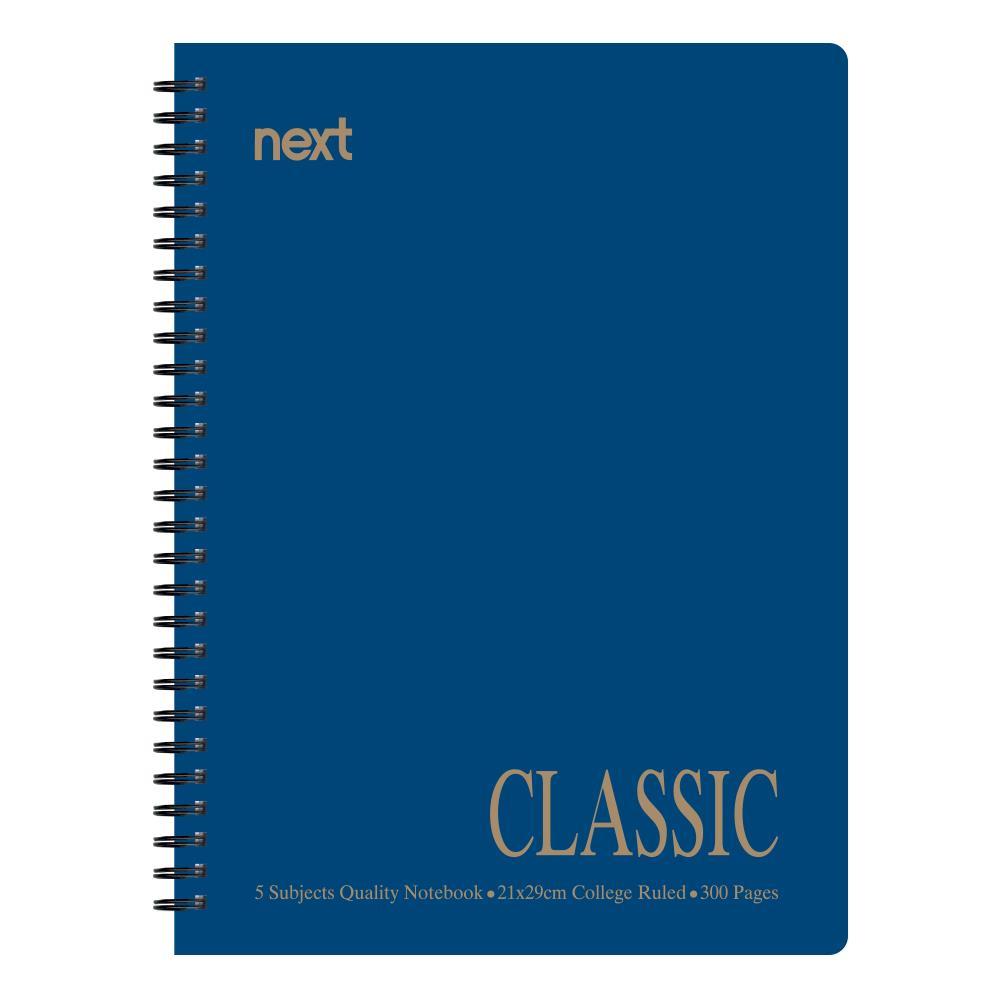 Next classic τετράδιο σπιράλ μπλε17×25εκ. 5θεμ. 300σελ.