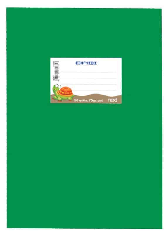 Next τετράδιο εξηγήσεων πράσινο 50φυλ. 70γρ. 17×25εκ