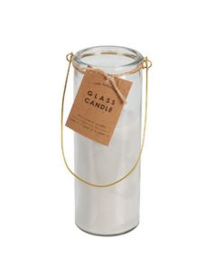 Κερί σε διαφανές γυαλί Ø6,2×17,5εκ. με μεταλλική λαβή σε χρυσό χρώμα.