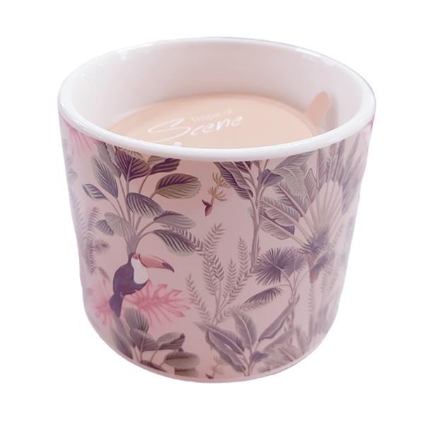 Κερί αρωματικό 180gr. σε κεραμικό βαζάκι με τροπικά σχέδια.