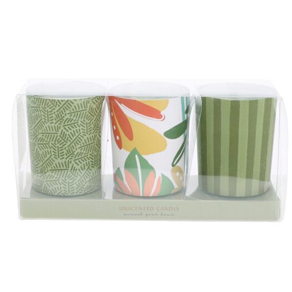 Σετ με 3 αρωματικά κεριά Ø5×6εκ. με βοτανικά θέματα Green.