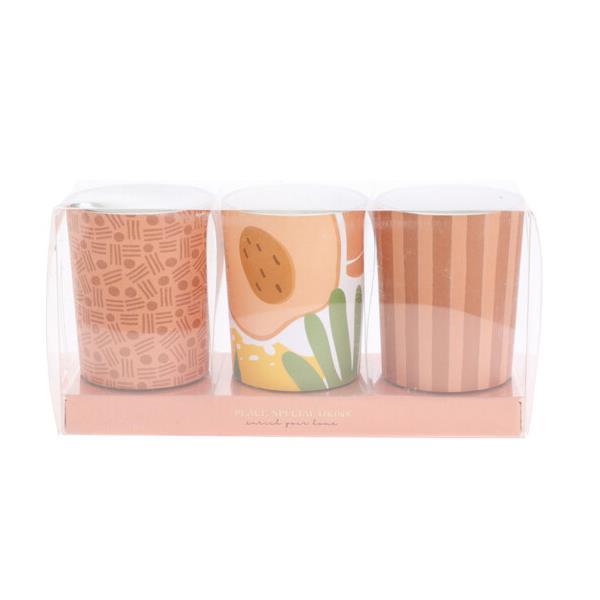 Σετ με 3 αρωματικά κεριά Ø5×6εκ. με βοτανικά θέματα Red.