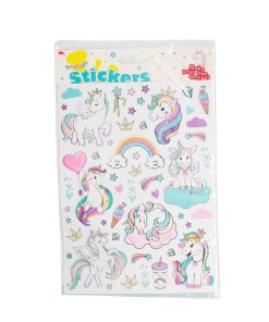 Αυτοκόλλητα ‘Unicorn’ , 2 σελίδες με 98 σχέδια. Πολύχρωμα με έντονα σχέδια και σχήματα τα αυτοκόλλητα πάντα αποτελούν μια καλή επιλογή διασκέδασης και δημιουργικότητας για τα παιδιά. Βοηθούν στην ανάπτυξη της λεπτής κινητικότητας καθώς απαιτούνται προσεκτικές κινήσεις ώστε να ξεκολλήσουν σωστά χωρίς να σκιστούν. Διαστάσεις ∶∶17×23εκ
