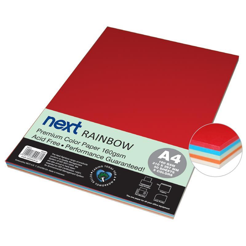 50 φύλλα κοκτέηλ, χρωματιστά φωτοαντιαγραφικά χαρτιά Α4, 160γρ., 5 χρώματα επί 10 φύλλα/ χρώμα.