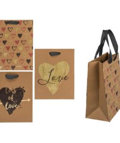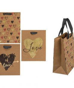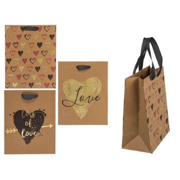 Χάρτινες τσάντες κραφτ με καρδιές, κοκτέηλ 3 σχέδια Υ23x18x10εκ.