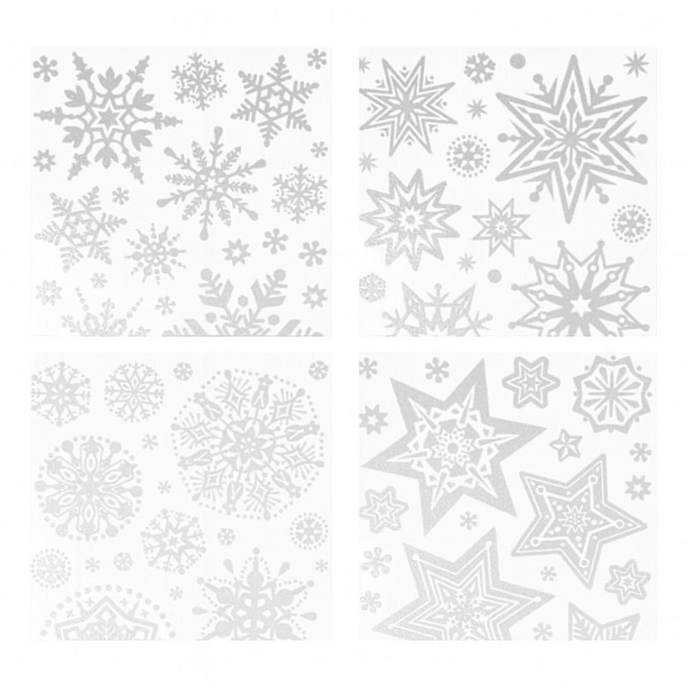 Χριστουγεννιάτικα αυτοκόλλητα παραθύρου Χιονονιφάδες ασημί 30×42εκ.