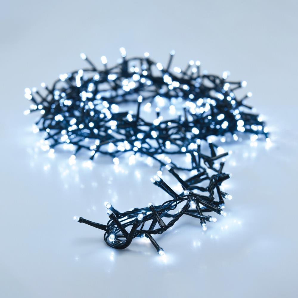 Σετ χριστουγεννιάτικων φωτιστικών με 700 λευκά LED σε καλώδιο πράσινου χρώματος. Με συνολικό μήκος 14 μέτρα και απόσταση λαμπτήρων 2 εκ., δημιουργούν ομοιόμορφο και εντυπωσιακό φωτισμό για το δέντρο ή τον χώρο. Διαθέτουν 8 λειτουργίες με μνήμη, χρονοδιακόπτη 8/16 ωρών και καλώδιο τροφοδοσίας 3 μέτρων, κατάλληλα για εσωτερική και εξωτερική χρήση (IP44).