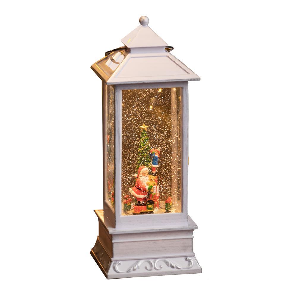 Χριστουγεννιάτικo φωτιζόμενο φανάρι με χιόνι και μουσική, Υ27×10,5×10,5εκ.