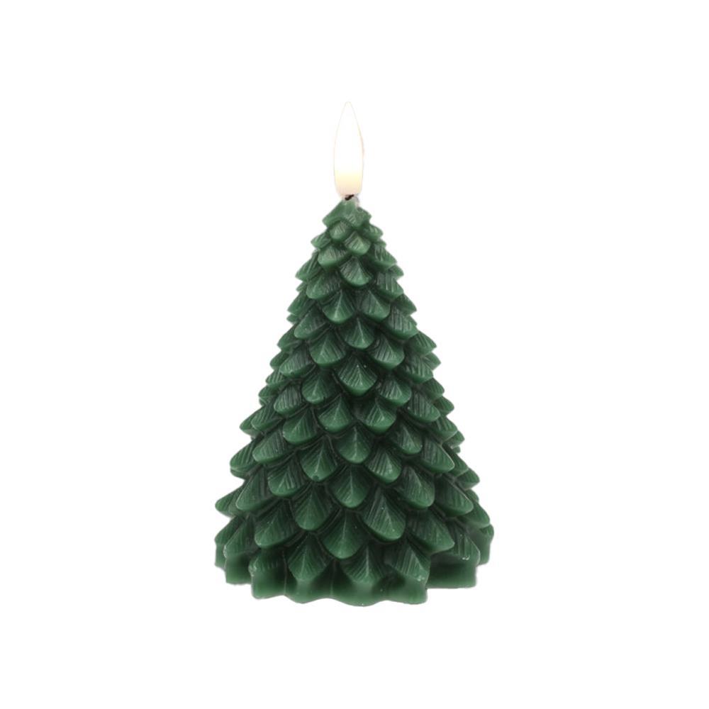 Χριστουγεννιάτικο LED κερί σε σχήμα δέντρου σε σκούρο πράσινο χρώμα. Διαθέτει ζεστή λευκή φλόγα που τρεμοπαίζει ρεαλιστικά, δημιουργώντας ατμοσφαιρικό φωτισμό για τις γιορτές. Λειτουργεί με μπαταρίες και ενσωματωμένο χρονοδιακόπτη 6/18 ωρών για μέγιστη ευκολία. Ιδανικό για στολισμό τραπεζιού, ραφιού ή παράθυρου.