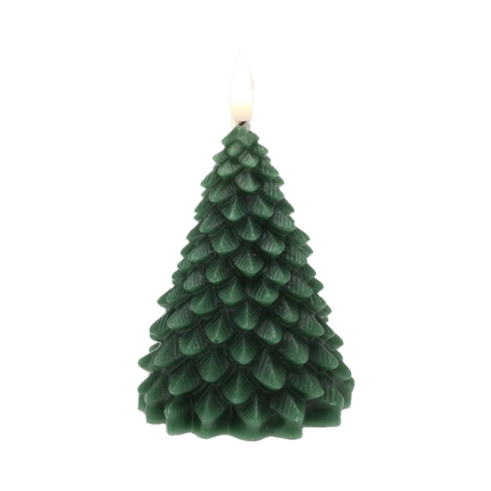 Χριστουγεννιάτικο LED κερί σε σχήμα δέντρου σε σκούρο πράσινο χρώμα. Διαθέτει ζεστή λευκή φλόγα που τρεμοπαίζει ρεαλιστικά, δημιουργώντας ατμοσφαιρικό φωτισμό για τις γιορτές. Λειτουργεί με μπαταρίες και ενσωματωμένο χρονοδιακόπτη 6/18 ωρών για μέγιστη ευκολία. Ιδανικό για στολισμό τραπεζιού, ραφιού ή παράθυρου.