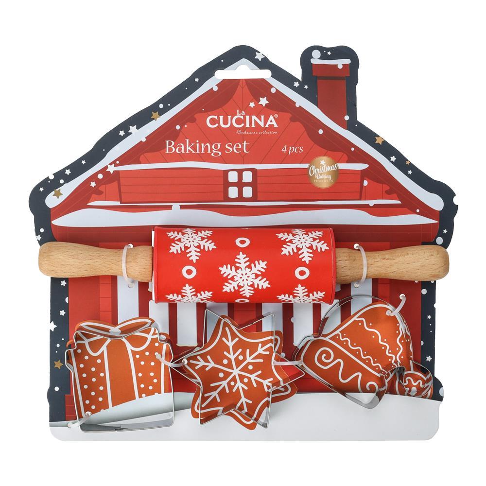 Το χριστουγεννιάτικο σετ μαγειρικής περιλαμβάνει έναν πλάστη και τρία κουπ πατγια μπισκότα, διαστάσεων 24x23x4,5εκ., με θέμα χιονισμένο σπίτι. Τα κουπ πατ έχουν εορταστικά σχήματα που επιτρέπουν τη δημιουργία γιορτινών μπισκότων. Το σετ είναι ιδανικό για χριστουγεννιάτικες δημιουργίες στην κουζίνα και έρχεται σε συσκευασία “tie-on card”, προσθέτοντας στην αισθητική του γιορτινού κλίματος.