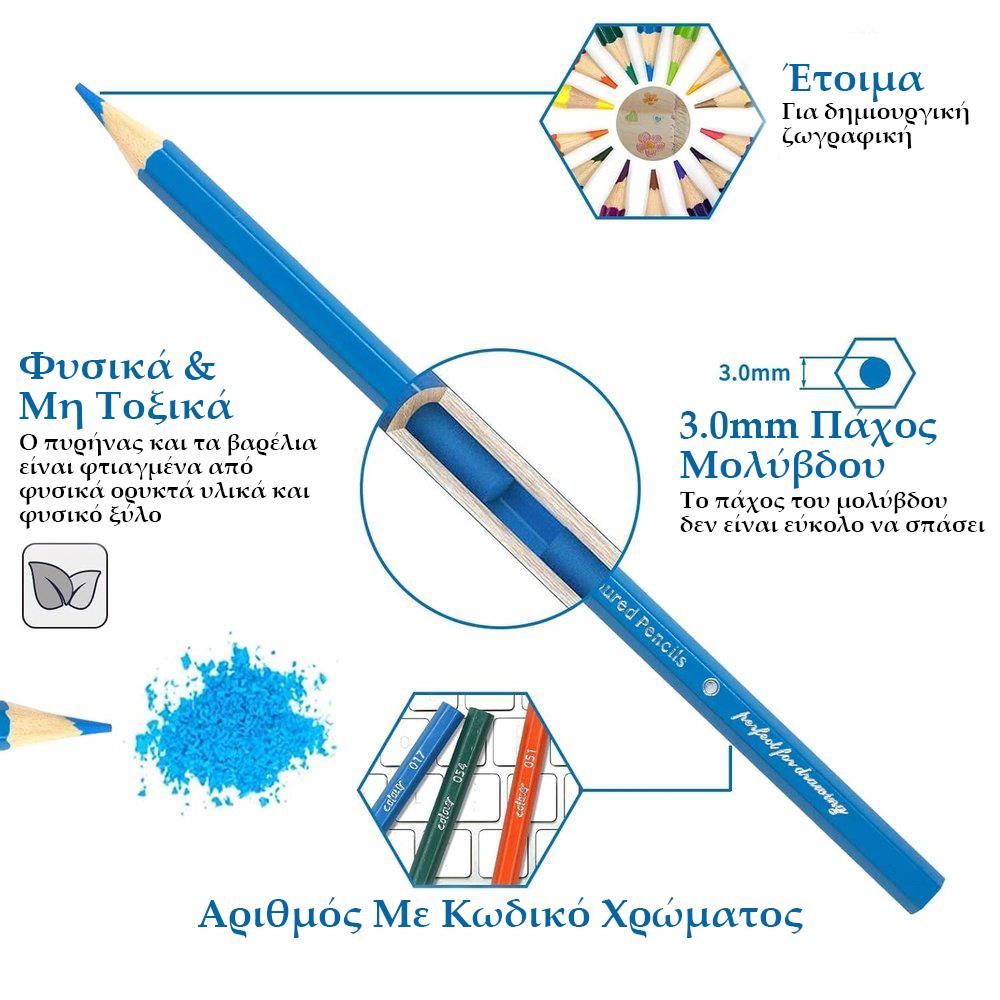 Σετ με 72 ξυλομπογιές, ιδανικά για ζωγραφική, σχέδιο και χρωματισμό. Με σκληρότητα HB και oil-based πυρήνα 0,7mm, προσφέρουν έντονη απόδοση και υψηλή αντοχή.