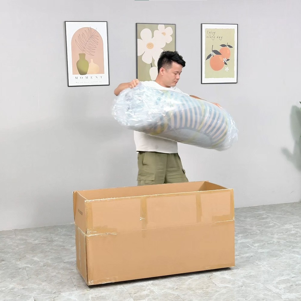 Η διαφορά των compressed επίπλων από τα κλασικά, είναι ότι με ειδική βιομηχανική επεξεργασία αφαιρείται ο αέρας από το υψηλής ποιότητας σφουγγάρι, μειώνοντας τον όγκο τους κατά τη μεταφορά.