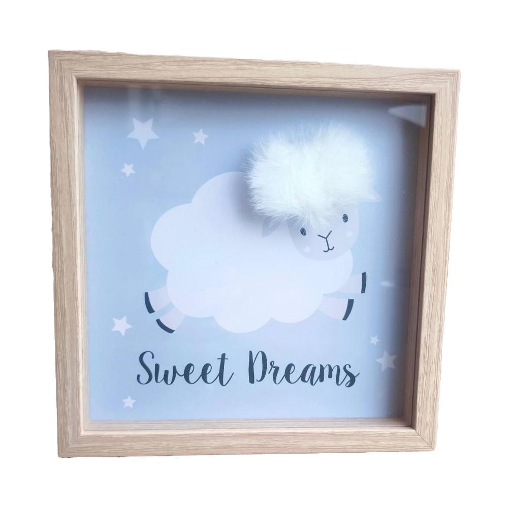 Διακοσμητικό κάδρο προβατάκι με ξύλινο πλαίσιο.