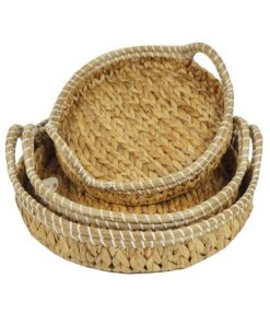Δίσκοι ψάθινοι σε σετ των τριών τεμαχίων με φυσική υφή.