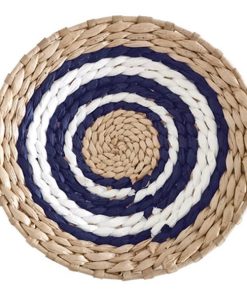 Δίσκος Boho διακοσμητικός ψάθινος φυσικό/λευκό/μπλε Ø30εκ.
