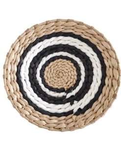Δίσκος Boho διακοσμητικός ψάθινος με 3 χρώματα: φυσικό, λευκό και μπλε.