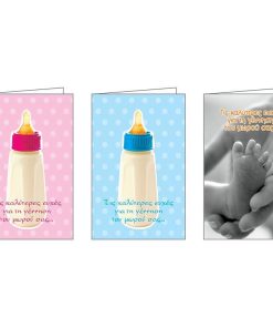 Ευχετήριες κάρτες γέννησης 7×10,5εκ, 3 σχέδια κοκτέηλ