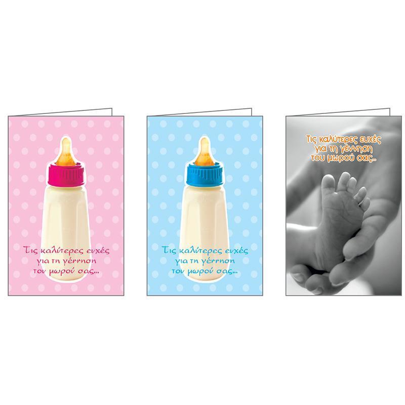 Ευχετήριες κάρτες γέννησης με φάκελο.