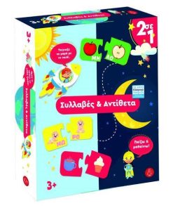 Το εκπαιδευτικό παζλ “Συλλαβές και αντίθετα” είναι ένα παιχνίδι που βοηθά το παιδί να μάθει να συλλαβίζει και να αντιληφθεί την έννοια του αντίθετου. Προτεινόμενη ηλικία: 3+ ετών Διάσταση κουτιού: 24x28x5εκ.