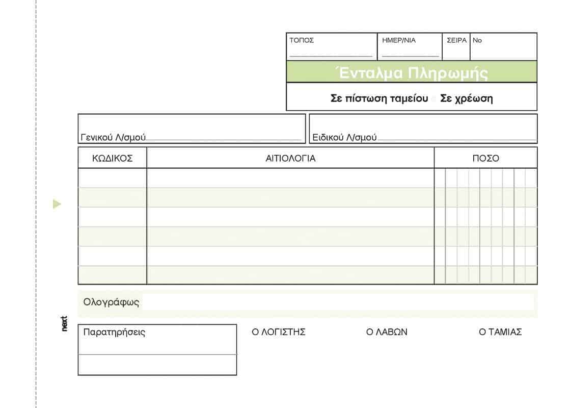 Ένταλμα πληρωμής, τριπλότυπο 3×50 φύλλα.