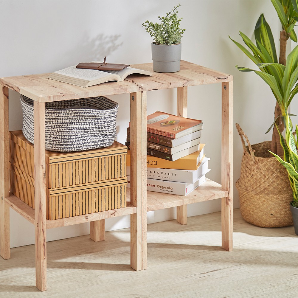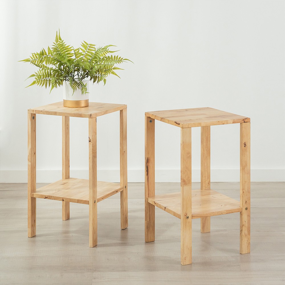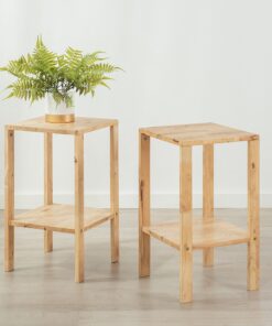 Έπιπλο πολλαπλών χρήσεων Nextdeco Natural μασίφ ξύλο. Είναι σετ 2 τεμαχίων και μπορούν να χρησιμοποιηθούν ως ράφια, κομοδίνα, βοηθητικά τραπεζάκια ή μικρές βιβλιοθήκες. Ιδανικά για το σαλόνι, το υπνοδωμάτιο ή το γραφείο, στοιβάζονται εύκολα και μεταφέρονται χωρίς κόπο. Μπορούν να τοποθετηθούν δίπλα-δίπλα ή το ένα πάνω στο άλλο, ανάλογα με τις ανάγκες του χώρου σας.