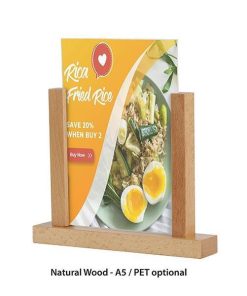 Επιτραπέζια ξύλινη βάση για μενού Α5 ή επιγραφές.