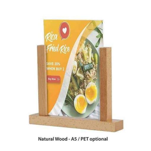 Επιτραπέζια ξύλινη βάση για μενού Α5 ή επιγραφές.