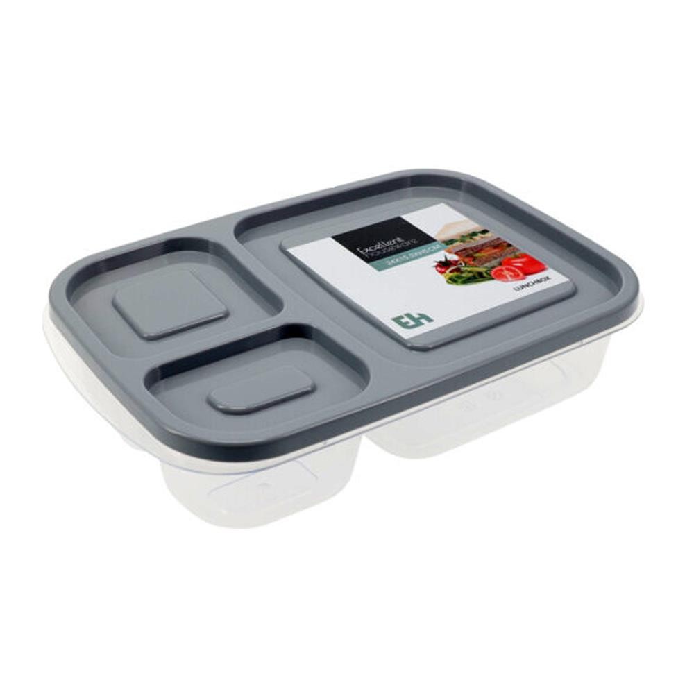 Πρακτικό lunchbox κατασκευασμένο από ανθεκτικό υλικό PP, με 3 ξεχωριστές θήκες για εύκολη διαχωρισμένη αποθήκευση τροφίμων. Βάρος: 121 γρ. Χρώμα: γκρι. Διαστάσεις: Υ5,1x24x15,5εκ. Ιδανικό για το σχολείο, τη δουλειά ή το πικ-νικ – οργανώνει εύκολα το γεύμα σου σε ξεχωριστές θήκες!