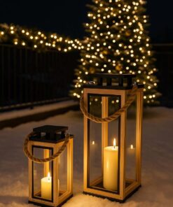 Σετ δύο ξύλινα φανάρια που συνδυάζουν φυσική ομορφιά και διαχρονικό design. Ιδανικά για χρήση με κεριά ή LED, χαρίζουν ζεστή ατμόσφαιρα σε εσωτερικούς και εξωτερικούς χώρους. Η στιβαρή ξύλινη κατασκευή τα καθιστά ανθεκτικά, ενώ οι διαφορετικές διαστάσεις τους προσφέρουν ευκολία στη διακόσμηση, είτε τοποθετηθούν μαζί είτε ξεχωριστά.