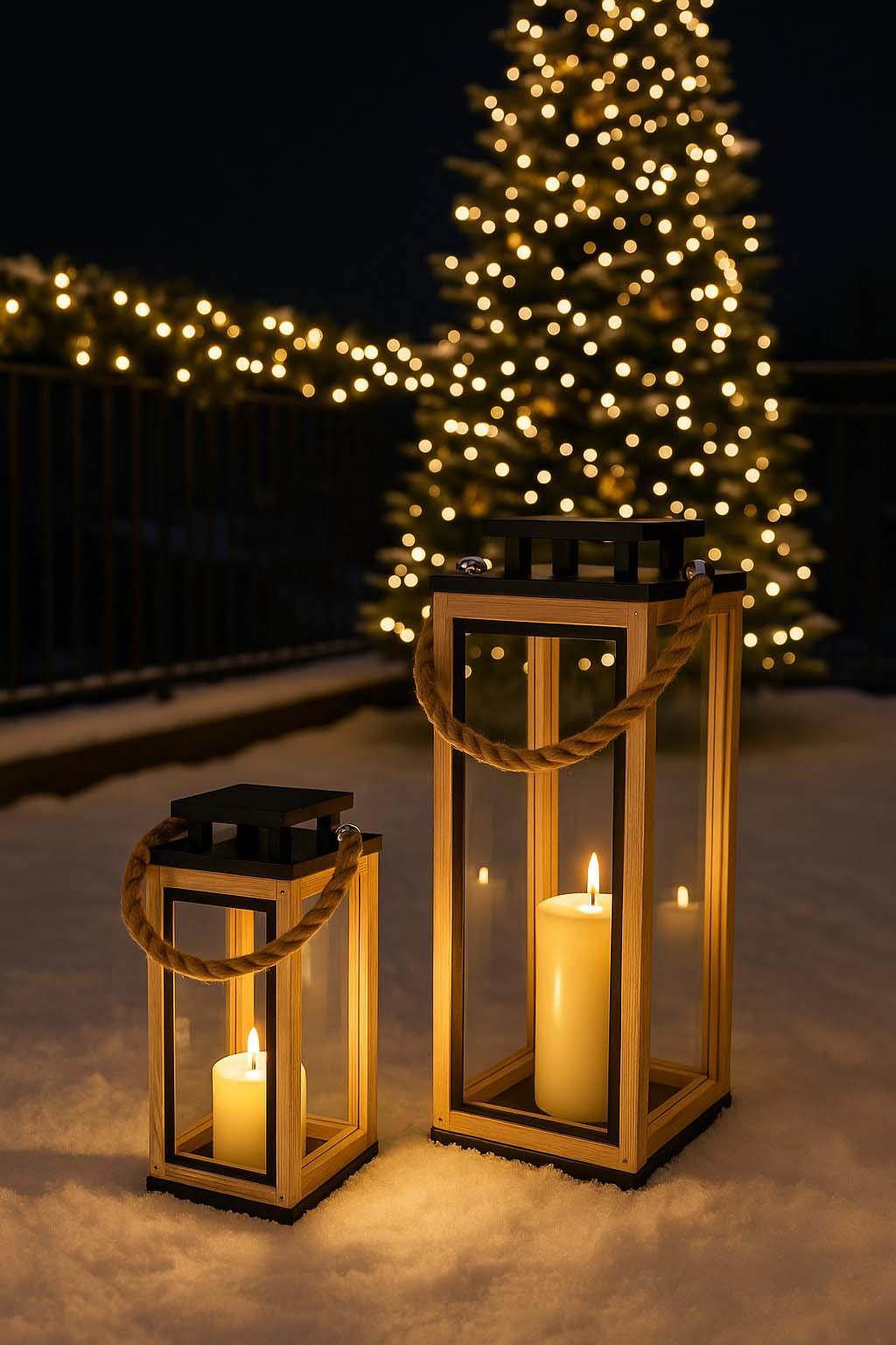 Φανάρια ξύλινα σετ 2 τμχ 32εκ. – 50εκ.