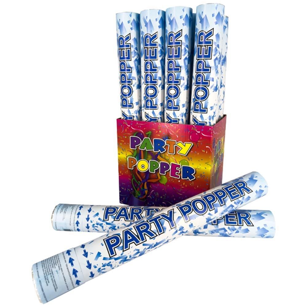 Φαντασμαγορικός κύλινδρος μεταλλιζέ. Δώστε μια έκρηξη χαράς και λάμψης σε κάθε σας εκδήλωση! Αυτά τα κλασικά κανονάκια κομφετί (party poppers) είναι το απόλυτο αξεσουάρ για να απογειώσετε τη διάθεση των καλεσμένων σας.