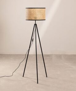 Φωτιστικό δαπέδου rattan με ξύλινη βάση Υ145xØ45εκ.